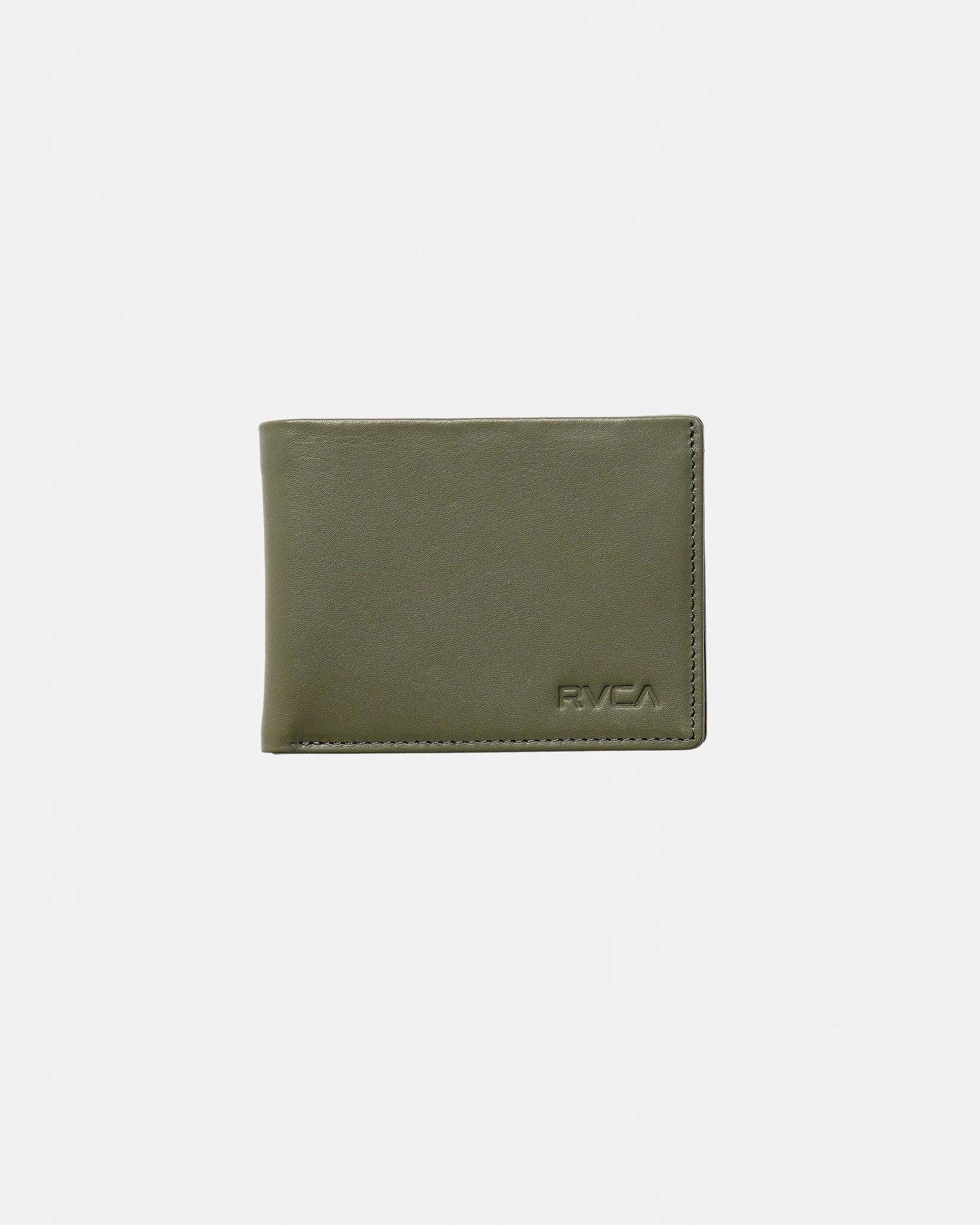 Streamlined 100% leather wallet with six internal card slots and cash pocket keeps essentials organized. Sleek, branded RVCA design delivers sophisticated minimalism