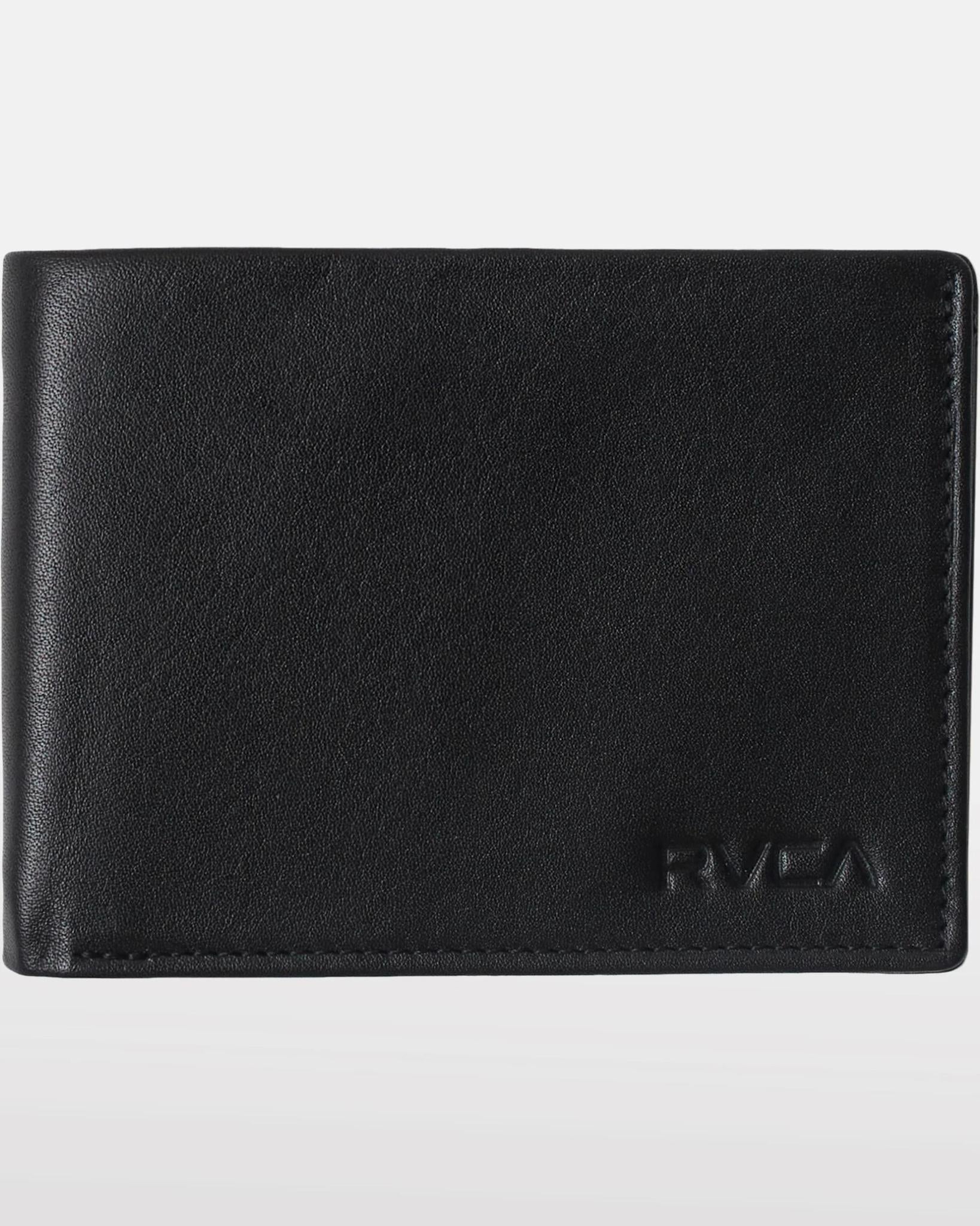 Streamlined 100% leather wallet with six internal card slots and cash pocket keeps essentials organized. Sleek, branded RVCA design delivers sophisticated minimalism.
