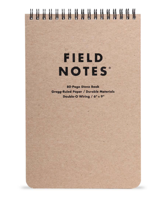 Steno book dimensions are 6" × 9" (15cm × 23cm).